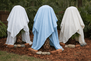 This guide helps protect plants during typical Florida cold snaps. Prolonged hard freezes (below 28°F for several hours) may still cause damage, even with protection.